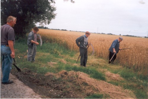 Es gibt mehrere Möglichkeiten, das Getreide für die neue Erntekrone zu scheren: nur die muss auch richtig “scharf” sein. Ob Karl Janssen da mit seiner Heckenschere mithalten kann? |