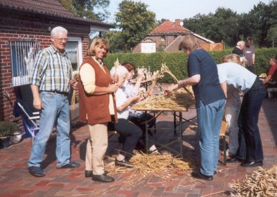 Nicht ein Bett, sondern die gesamte Nachbarschaft im Kornfeld. | Im September wurde die Erntekrone gebunden und Gestecke für die Saaldekoration gebastelt. |