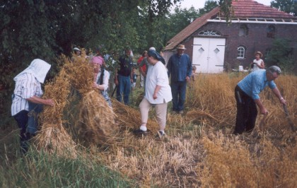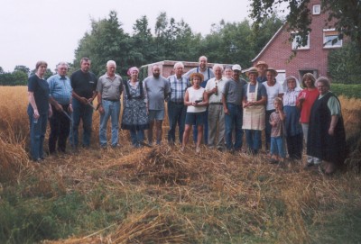 Das Müggenkruger Erntekönigspaar Gisela und Helmut Janßen aus Leerhafe lud seine Nachbarn kurzfristig bei herrlichem Sommerwetter zum Scheren mit “Sicht und Bick” auf das Kornfeld von Dieter Wilken ein, um nach alter Väter Sitte das Getreide zu schneiden. Das Königspaar durfte nach ausführlicher Anweisung durch die erfahrenen Nachbarn den ersten Schnitt machen. Dem gemütlichen Beisammensein folgt im September ein weiteres. Dann nämlich wird die Erntekrone gebunden, damit am 27. September eine neues Erntefest gefeiert werden kann.
